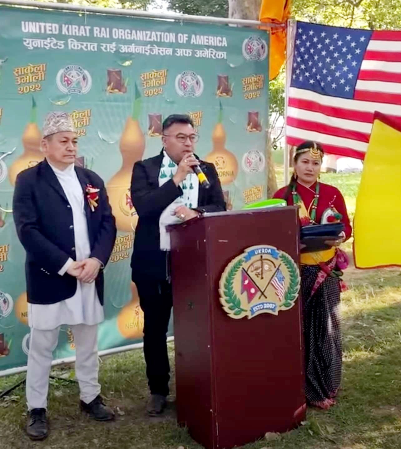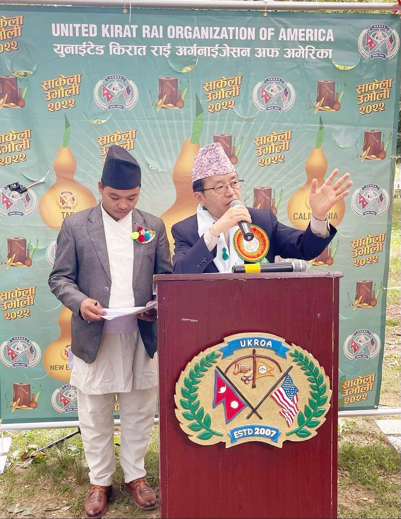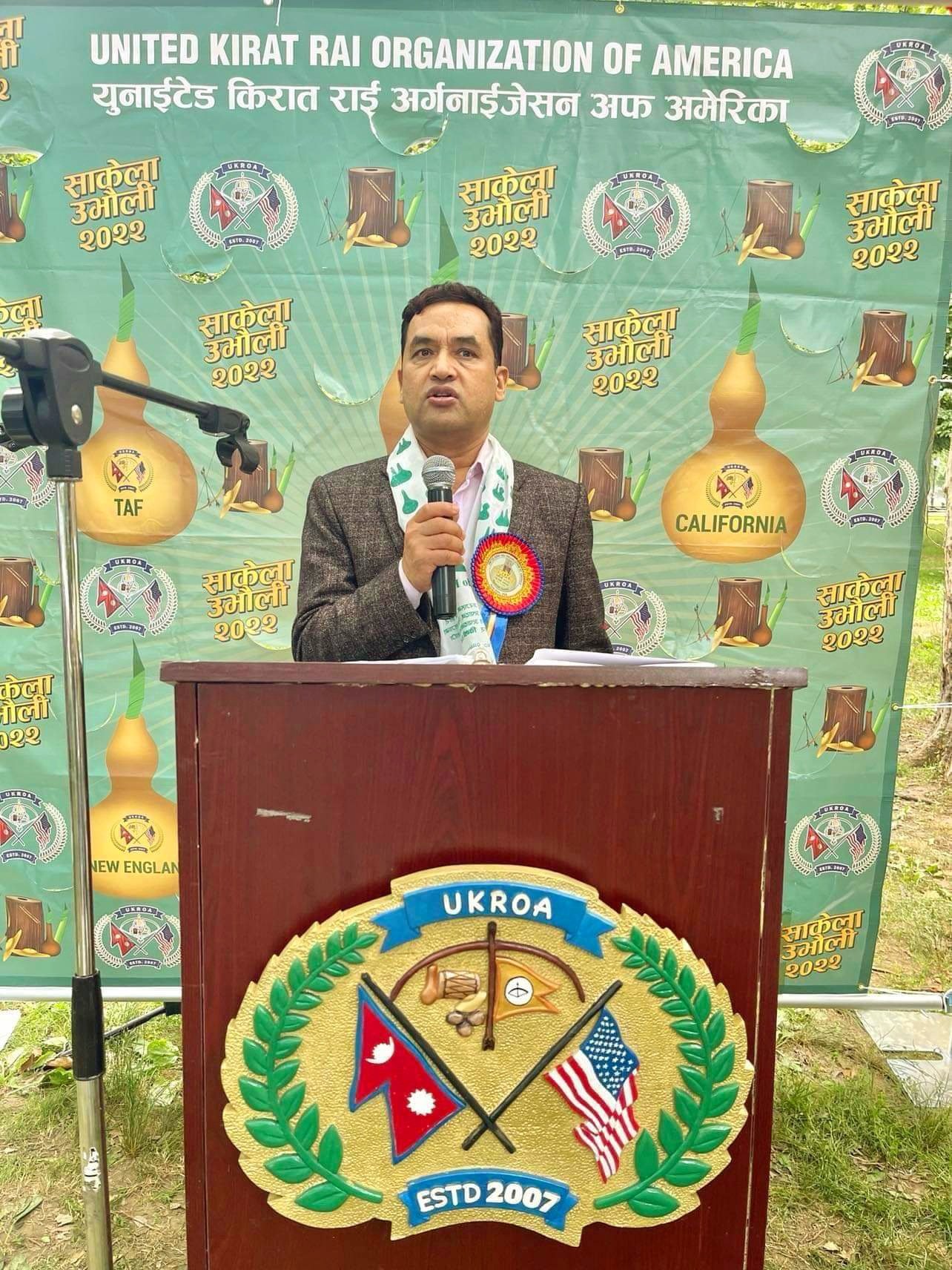 कार्यक्रममा बोल्दै युनाईटेड किरात राई अर्गनाइजेसन अफ अमेरिका (युक्रा)का केन्द्रिय अध्यक्ष जय कुमार राईले साकेलाको शुभकामना व्यक्त गर्दै अमेरिकामा किराती साकेला थान स्थापना गर्नु पर्नेमा जोड दिएका थिए।