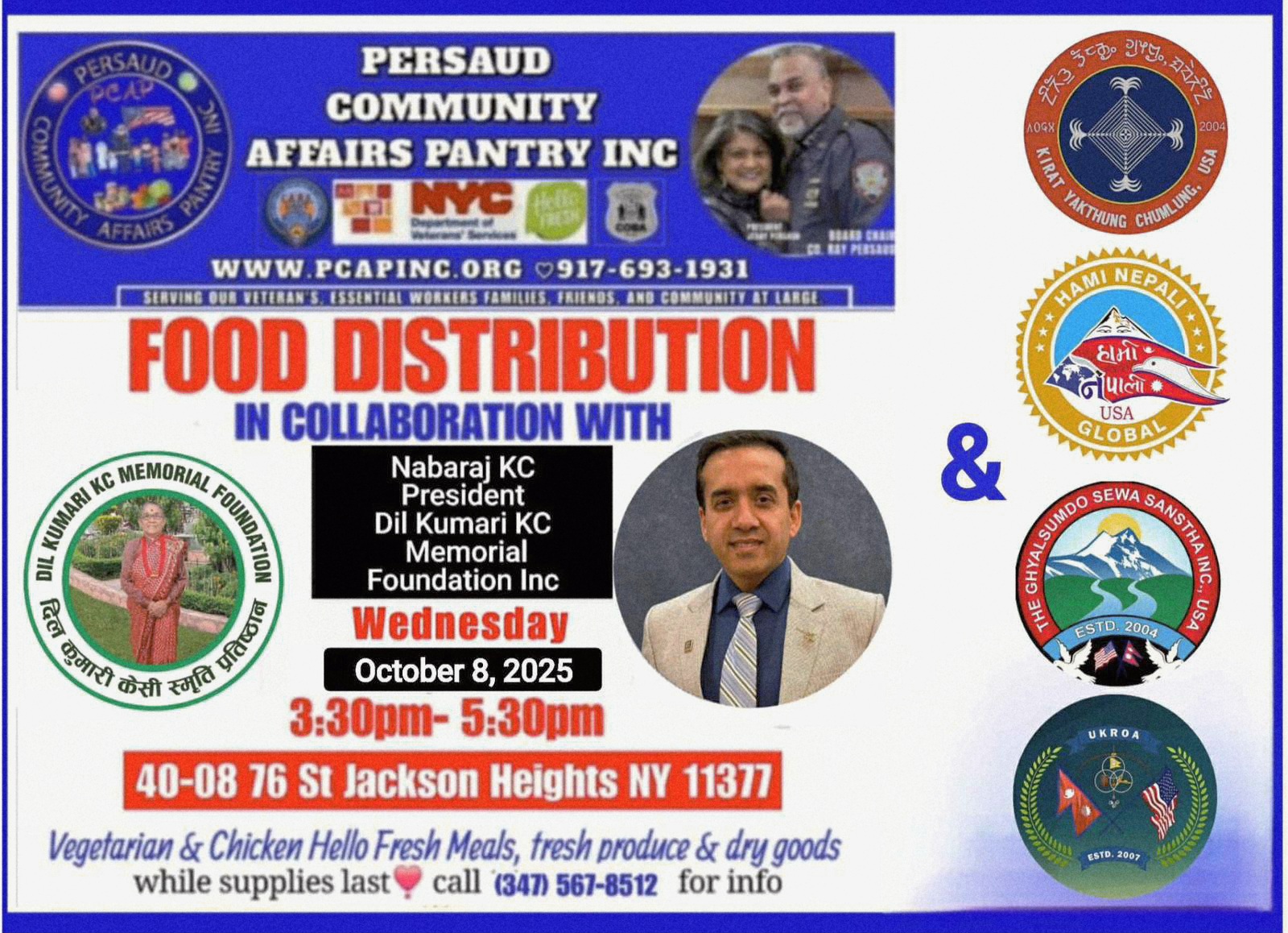 न्यूयोर्क – समाजसेवा र मानवीय सहयोगको सुन्दर उदाहरण प्रस्तुत गर्दै स्थानीय समुदायका अगुवाहरूले अक्टोबर ८ तारीख संयुक्त रूपमा निःशुल्क भोजन वितरण कार्यक्रम सम्पन्न गरेका छन्।