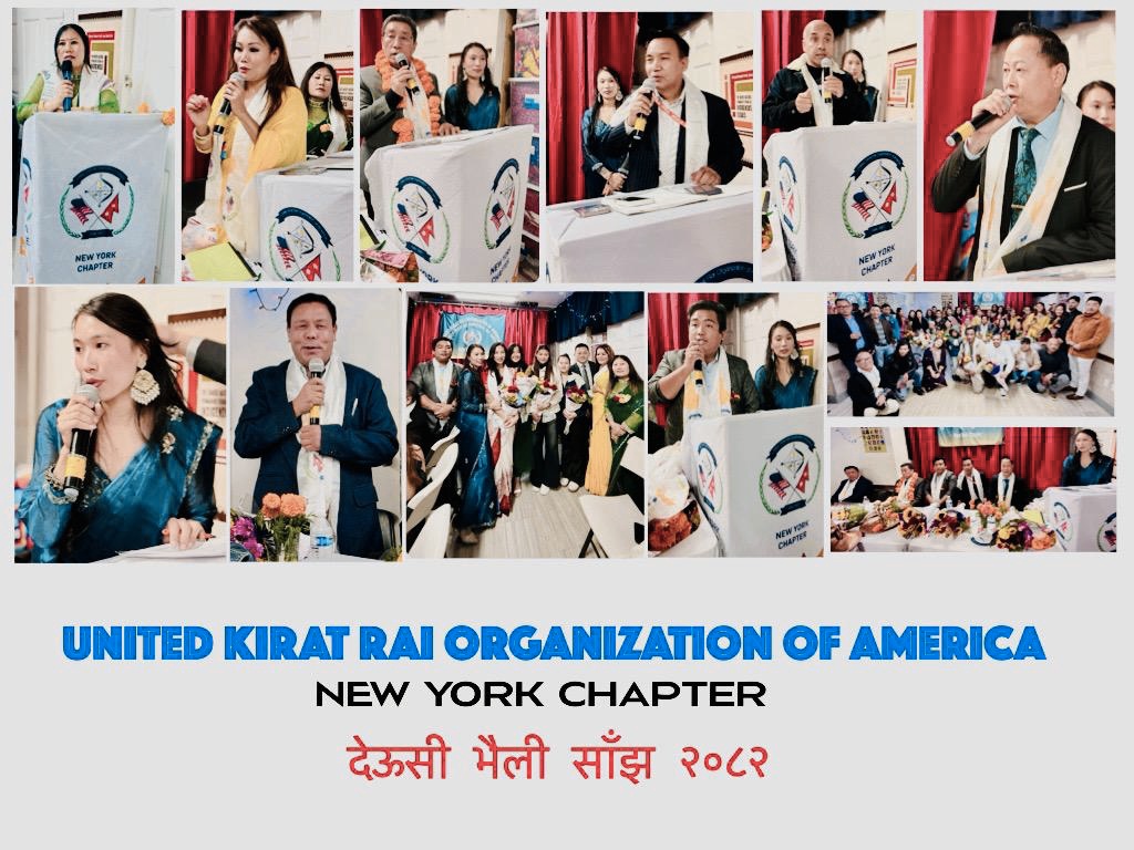 न्युयोर्क । युनाइटेड किरात राई अर्गनाइजेसन अफ अमेरिका ,यायोख्खा न्युयोर्क च्याप्टर (UKROA)ले यही अक्टोबर १७ काम दिन किरात राईहरुको महान चाड बलिहाङ् चाडको सुखद उपलक्ष्यमा देउसी भैलो कार्यक्रम अध्यक्ष अरुण राइको अध्यक्षतामा मनाएको छ । कार्यक्रम न्युयोर्कको ज्याक्सन हाइट्स क्विन्समा सम्पन्न भएको थियोे । अध्यक्ष अरुण राइले सहभागी सबैलाई उपस्थिति जनाइदिएकोमा धन्यवाद टक्र्याउदै बलिहाङको शुभकामना दिनुभएको थियो । कार्यक्रममा न्युयोर्क च्याप्टरका  वरिष्ठ उपाध्यक्ष तथा कलाकार संघ अमेरिकाका अध्यक्ष  वसन्ती राइले स्वागत मन्तव्य राख्नु भएको थियो।